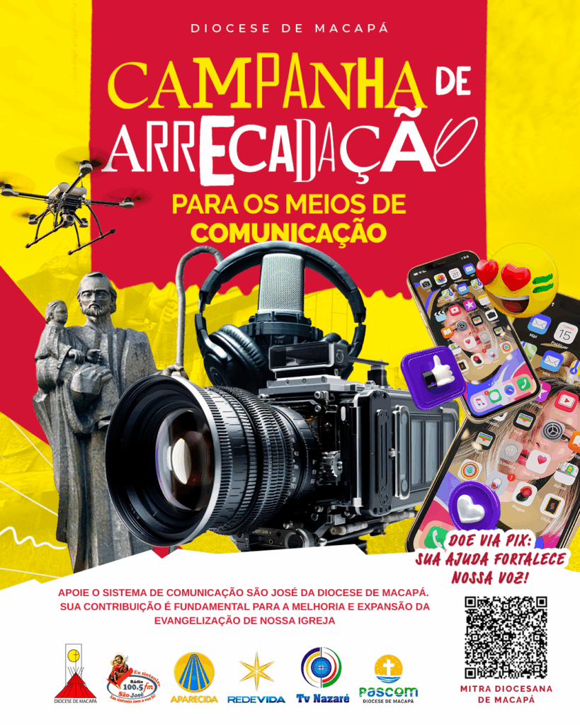 A Diocese de Macapá lança, nesta quinta-feira, 9, uma campanha de arrecadação voltada à reestruturação e modernização dos seus meios de comunicação — TV, Rádio e Pastoral da Comunicação. A iniciativa faz parte de um conjunto de ações que buscam fortalecer a presença e a missão evangelizadora da Igreja Católica no Amapá, que busca reforçar a utilização da comunicação como instrumento de fé, unidade e serviço.