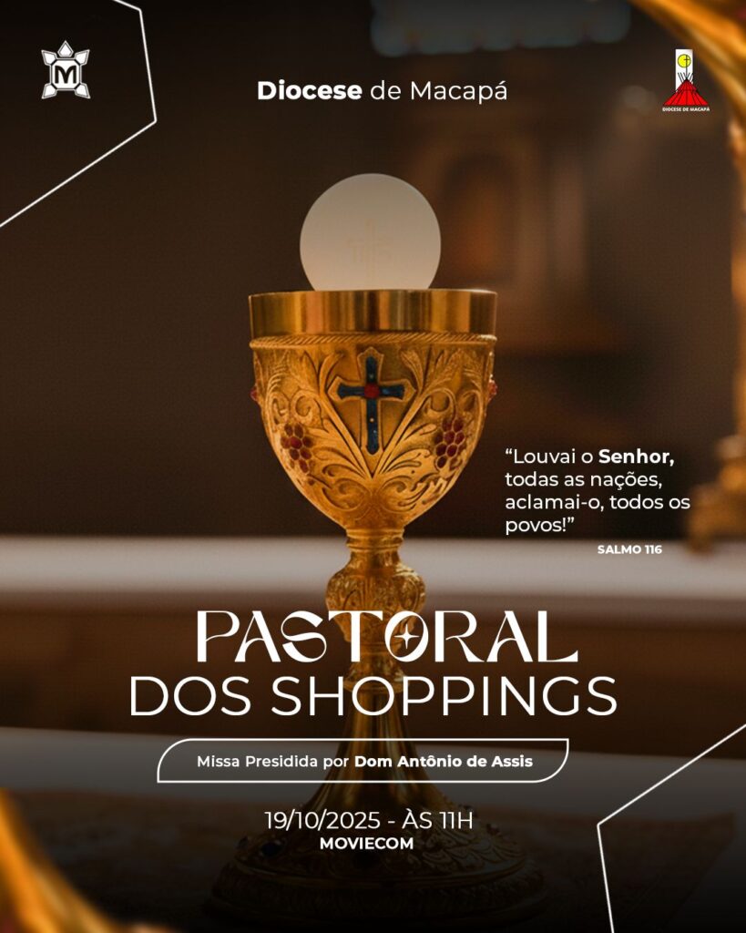Como marco desse início, será celebrada a primeira missa da Pastoral dos Shoppings, no próximo domingo, 19 de outubro, às 11h, no cinema Moviecom no Macapá Shopping, presidida por Dom Antônio de Assis, bispo diocesano.