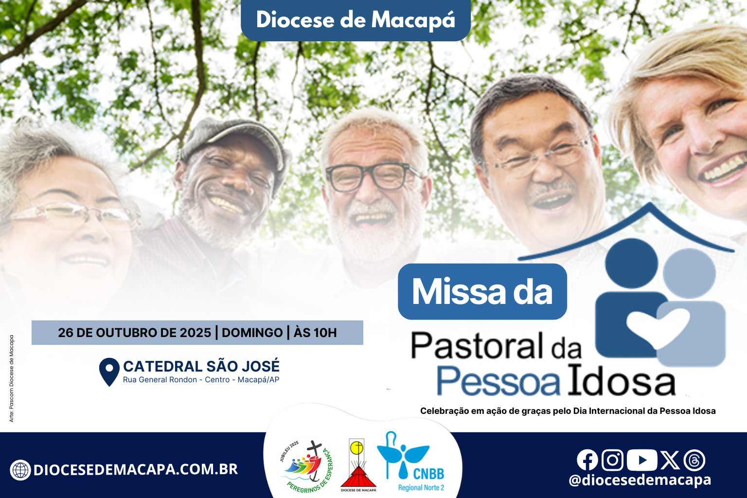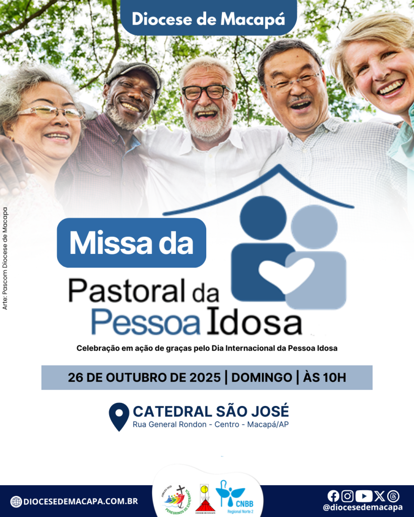 Em alusão ao Dia Internacional da Pessoa Idosa, festejado no dia 1 de outubro, a Pastoral da Pessoa Idosa (PPI) da Diocese de Macapá realiza no domingo, 26, uma missa em comemoração à data. A celebração acontece às 10h na Catedral São José, em Macapá, presidida pelo bispo diocesano Dom Antônio de Assis Ribeiro, SDB.