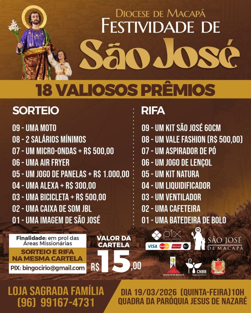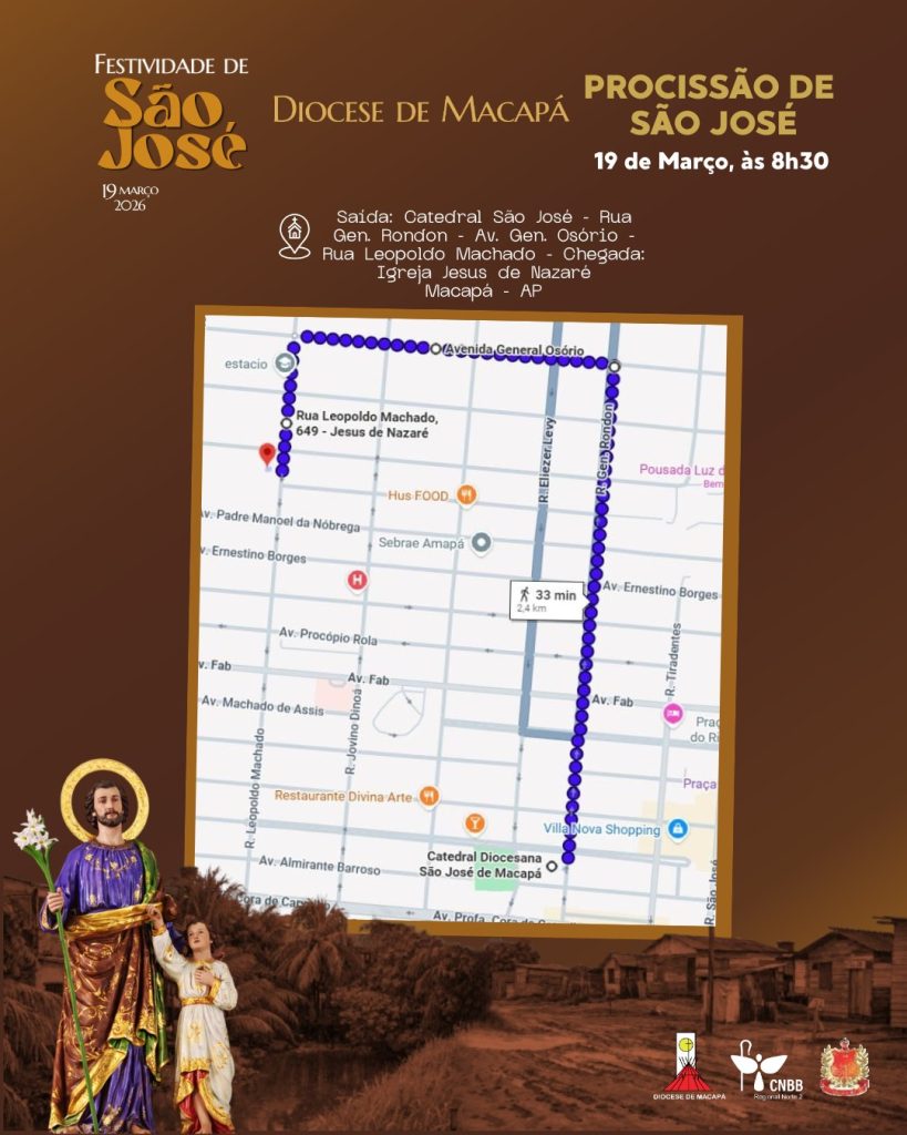 Na quinta-feira, dia 19 de março, a comunidade católica de Macapá celebra com grande devoção o dia de São José, padroeiro do Estado do Amapá, com uma programação especial que reúne momentos de espiritualidade, tradição e confraternização.